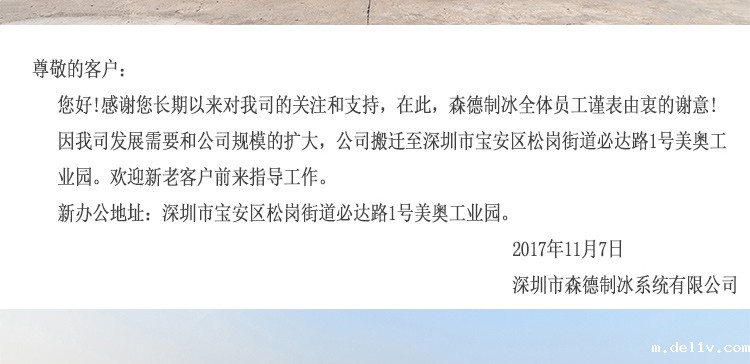 感谢多年来一直陪伴华体会棋牌战略合作皇马成长的全体员工,没有你们的努力付出,就不会有华体会棋牌战略合作皇马今日成就。感谢信任和支持华体会棋牌战略合作皇马的合作方,与华体会棋牌战略合作皇马共同发展。你们见证了华体会棋牌战略合作皇马发展,由产值不到千万的小企业,经过短短几年发展,产值达近5000万制冰设备服务商,成为制冷行业发展最迅猛的企业。因原来老厂房设施破旧,不管是小小的航吊还是厂房面积均不能满足现有的发展需求。公司股东研究决定扩大生产规模,搬迁至更能适合生产大型制冷设备的承重航吊厂房。公司由原来地址:深圳市宝安区松岗街道沙浦沙二工业区原双木林院内,搬迁至新地址:深圳市宝安区松岗街道燕川必达路1号美奥工业园。新地址公司相关人员已 送至合作方。特此通知,如有不便还望海涵