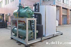 为保障日产30吨制冰机稳定安全运行,配置要比小型制冰机复杂很多。运行系统、压缩机安全保护等等多重保护,参数设置也更为复杂,制冰原理依然是一样。 1、日产30吨制冰机,采用工业用电,三相电380V/50hz,对供电负荷要求较高。 2、30吨制冰机,采用螺杆压缩机,或者多台活塞机并联,但造价较高。一般采用比泽尔螺杆机180Y/140P,或者汉钟螺杆