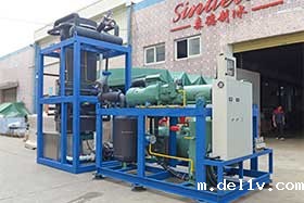 管冰机是制冰机的一种,其制冰原理和其它制冰机相同,管冰机是把水结成冰的机械装置,主要有制冷四大件:压缩机、冷凝器、膨胀阀、蒸发器组成封闭管路,用铜管与制冷配件焊接在一起,组成一个封闭循环的管路,再充注制冷剂组成一个循环的制冷系统。 管冰机制冰原理:管冰机制冰部分为蒸发器,蒸发器内由许多竖直平行钢管构成。蒸发器顶部的导流器以螺旋方式将水均匀地洒到每一根钢管
