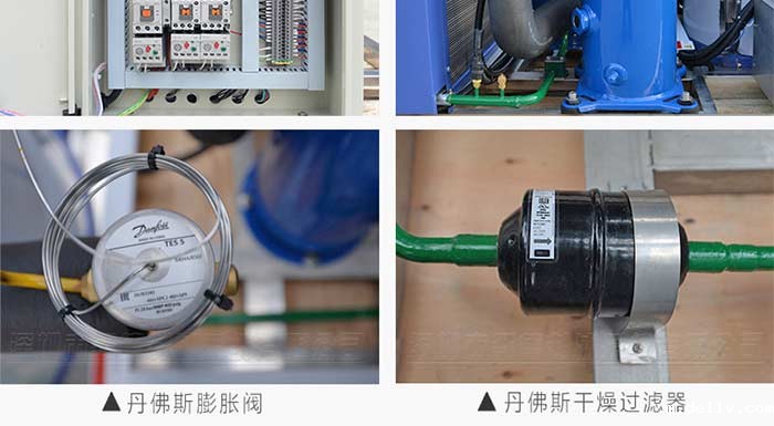 4.采用一线品牌制冷配件:德国比泽尔、丹麦丹佛斯、美国谷轮、台湾汉钟压缩机、意大利莱富康等知名压缩机,丹佛斯电磁阀、膨胀阀、干燥过滤器、美国爱默生膨胀阀等制冷配件,片冰机质量可靠,故障率低,制冰效率高。
