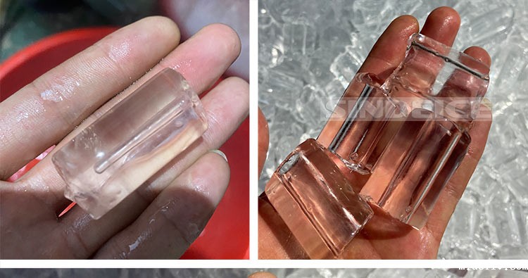 管冰是较规则的中空圆柱形,外直径分为22、29、35mm、42mm四种规格,高度25-60mm不等,中间的内孔直径可根据制冰的时间调整,一般直径在5-15mm之间。冰块质地坚硬、透明美观,不易融化,透气性好,储存期长。形状美观,在餐饮食品冰鲜中,不但具备了实用性还兼顾了观赏性。管冰多为可食用的管冰,主要用于饮品冷却、食品保鲜、渔船水产保鲜、实验室以及医药应用等。