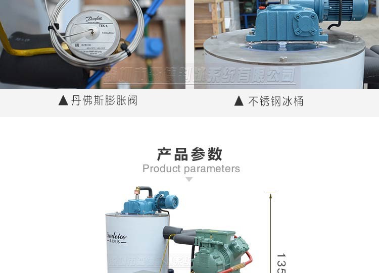 4.制冰机采用全不锈钢材质,冰桶、框架、电箱等均为不锈钢材料,能有效防腐蚀,制冰机使用寿命更长。